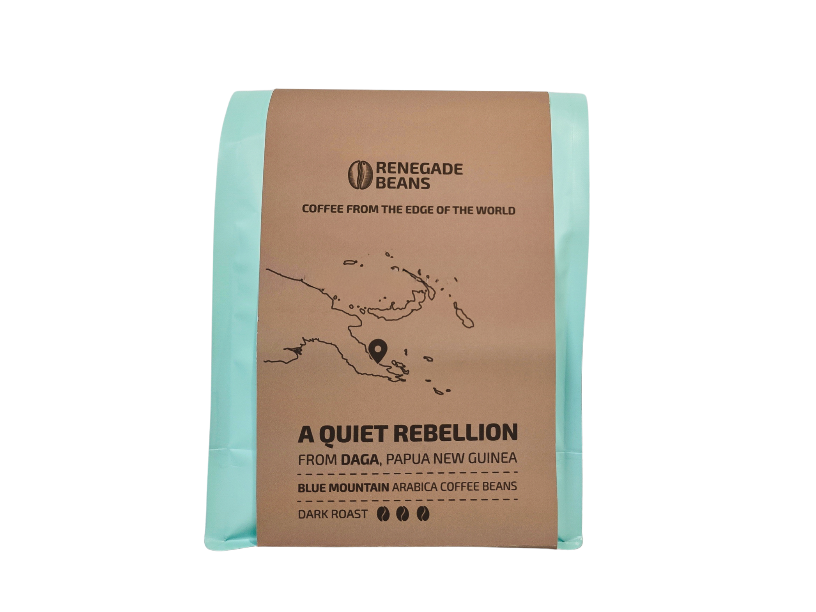 750 g ypač tamsiai skrudintų Blue Mountain Arabica rūšies kavos pupelių iš Dagos, Papua Naujosios Gvinėjos.